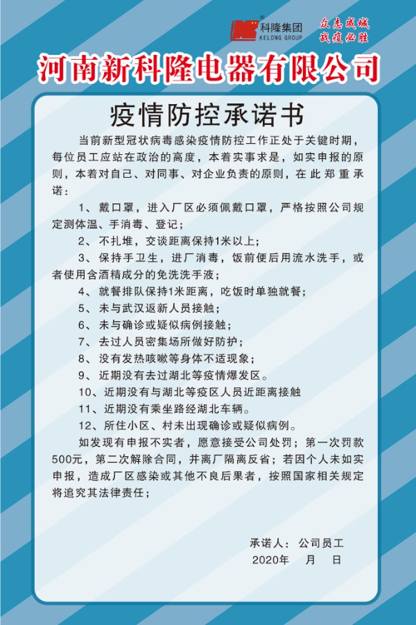 新冠肺炎疫情發(fā)生以來,國內(nèi)企業(yè)生產(chǎn)經(jīng)營發(fā)展受到較大影響,面臨形勢相當嚴峻。2月8日,國務院聯(lián)防聯(lián)控機制印發(fā)通知,對切實加強疫情科學防控、有序做好企業(yè)復工復產(chǎn)工作作出安排部署。為確保科隆集團生產(chǎn)經(jīng)營和疫情防控工作兩不誤,集團各單位快速反應、馬上行動,成立“疫情防控復工小組”,展開復工和疫情防控專題工作計劃,努力推動企業(yè)恢復正常生產(chǎn)經(jīng)營,為社會經(jīng)濟發(fā)展提供支撐、做好保障。